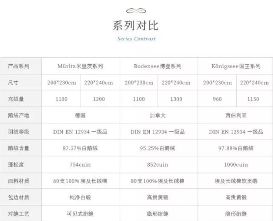 米里茨德国鹅绒系列PK某品牌进口德国鹅绒被,产品参数对比如下: