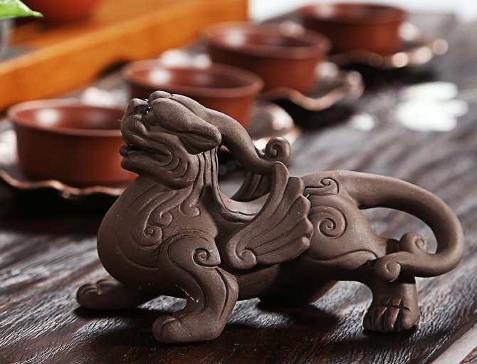 常喝茶的人都会在茶桌上摆放一只茶宠,即茶水滋养的宠物,多为澄泥或紫砂烧制的工艺品。喝茶时用茶汤涂抹或以剩下的茶水直接浇于茶宠之上,日积月累茶宠就会变得温润可人,茶香四溢。