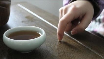 有客人到家给斟茶时,若人多杯子不便收回,可放到各人面前桌上,但在第一次倒茶时请记住要先尊老后卑幼,即先给长辈斟茶,其次平辈和晚辈,第二遍时就可按序斟上去。被敬茶的也要礼貌的回复“谢谢”,通常经常喝茶的会有喝茶专用的回敬方式,如被敬茶的是长辈,他会以食指在桌上轻弹两下,表示感谢,若是小辈平辈的会以食、中指在桌面轻弹二次表示感谢。
