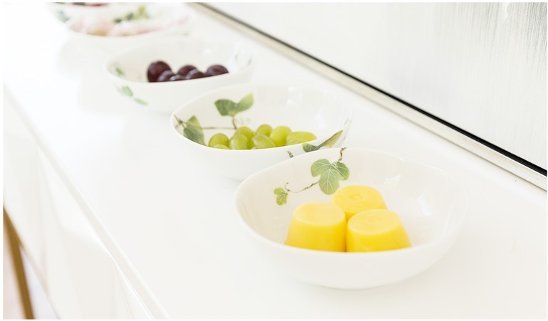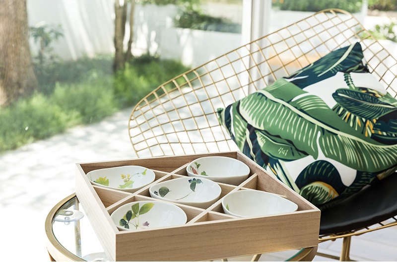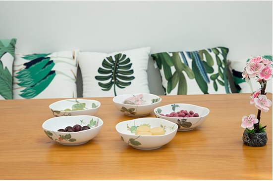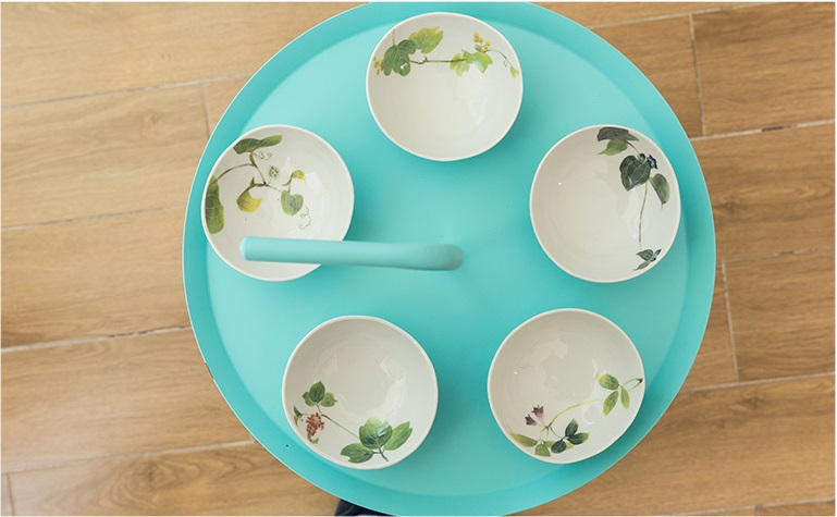 碗面光滑一丝不苟 碗内清新的绿叶带来 清风拂面的好心情 |