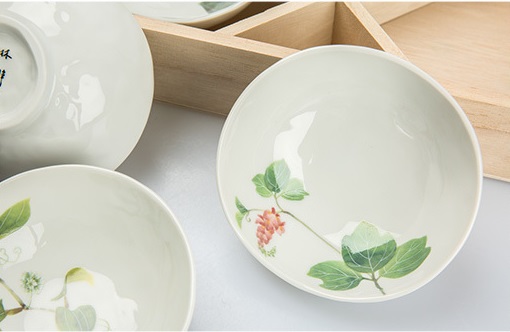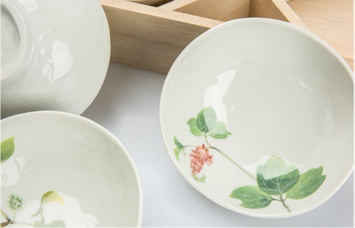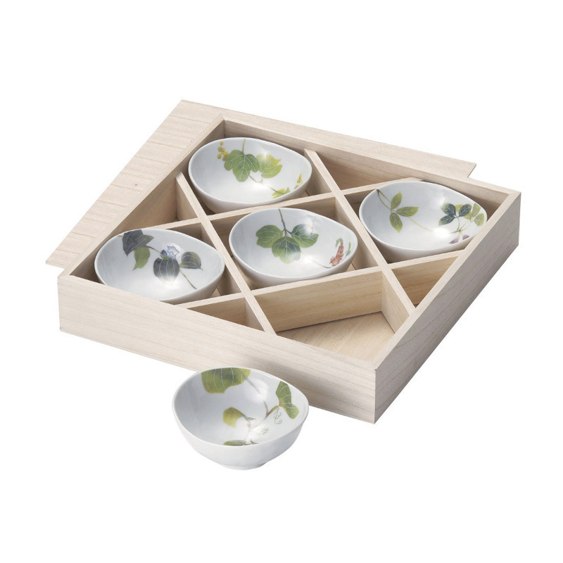 | 林静一春花系列浅口小碗5件木质礼盒套装 |