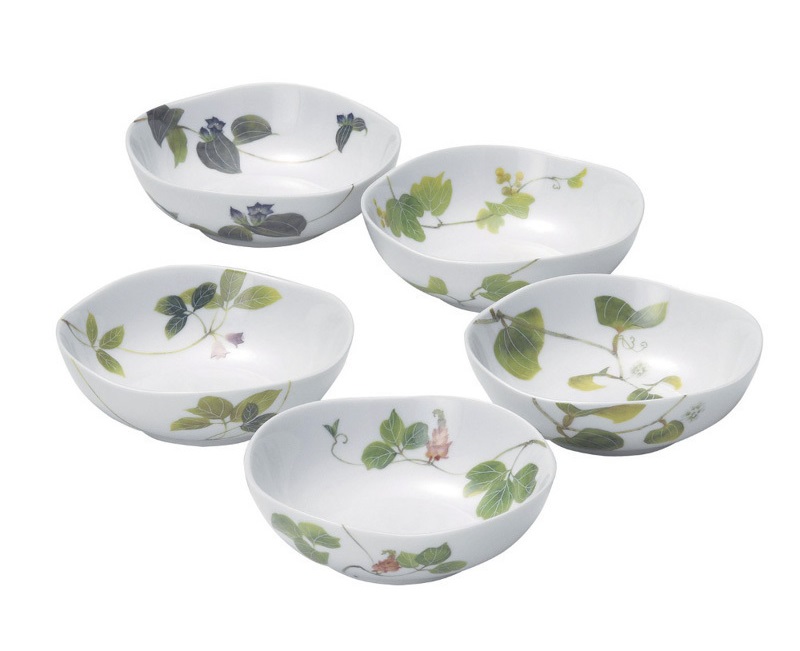 AITO美浓烧陶瓷小碗5件木盒套装 【林静一春花系列】绿色