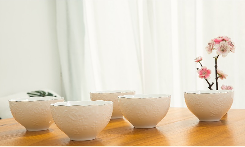AITO美浓烧陶瓷浮雕刻花银边碗5件 【桂由美葡萄刻花】纯白