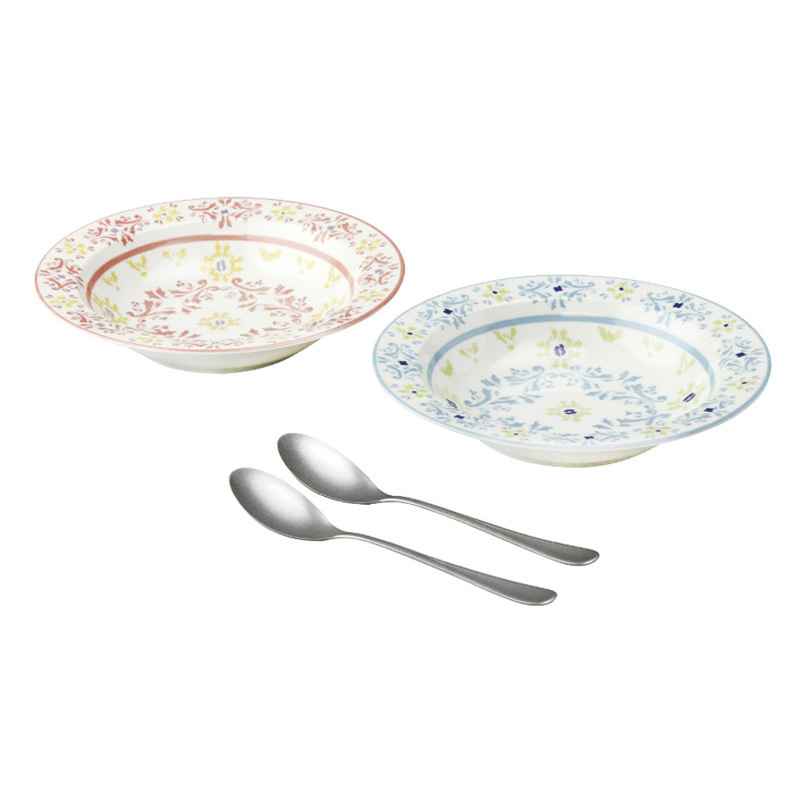 日本AITO美浓烧陶瓷碗勺子4件套 【Diane-Harrison系列】红蓝色