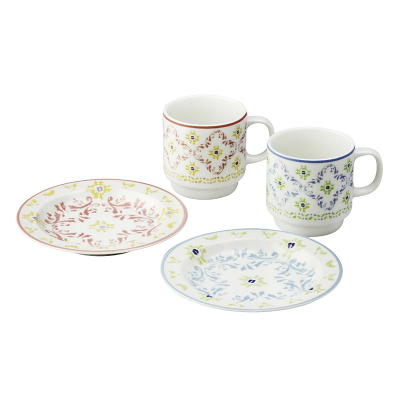 | sara美浓烧陶瓷杯碟4件套装 蓝/红 |