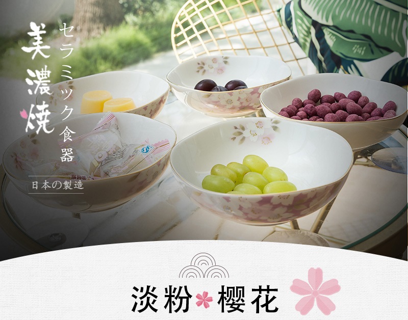 AITO美浓烧陶瓷小碗汤碗5件装 【宇野千代日和樱系列】樱粉