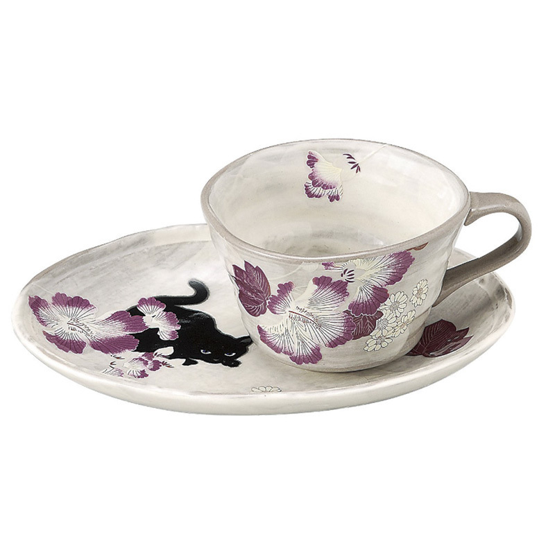 | 濑户烧陶瓷茶杯茶盘芙蓉与猫250ML |