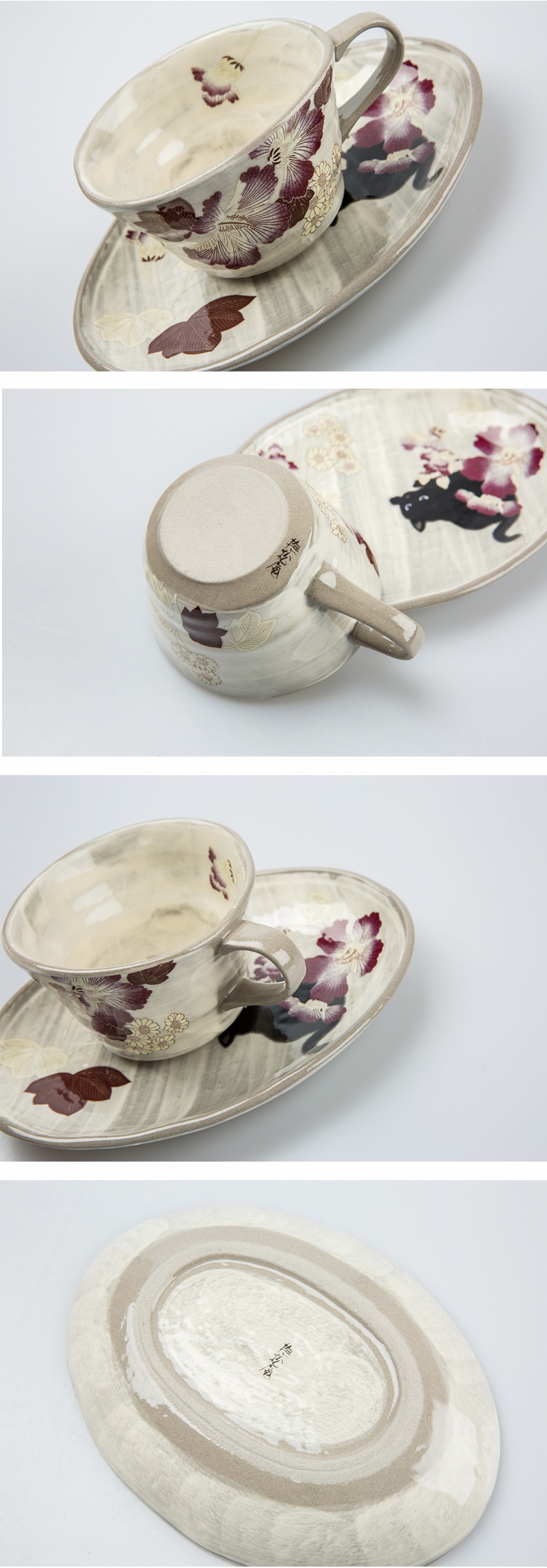 | 商品名称 | 日本AITO抚松庵濑户烧陶瓷茶杯茶盘芙蓉与猫250ML | |