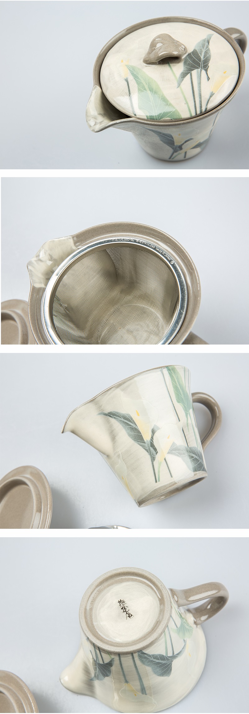 日本AITO濑户烧陶瓷茶壶不锈钢滤网 【抚松庵系列】马蹄莲