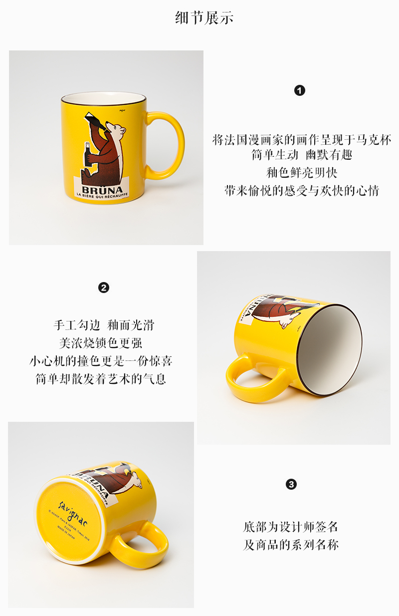 | 商品名称 | 日本原产AITOsavignac系列美浓烧陶瓷马克杯贪吃熊BRUNA | |