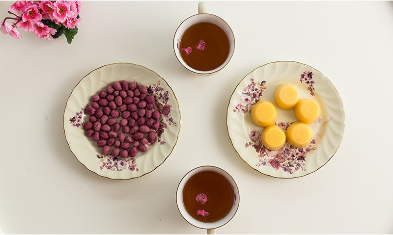 表面光滑 一丝不苟 金色点缀着杯碟 釉面光滑 杯内的一两朵小花 是无处不在的小浪漫 |