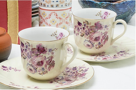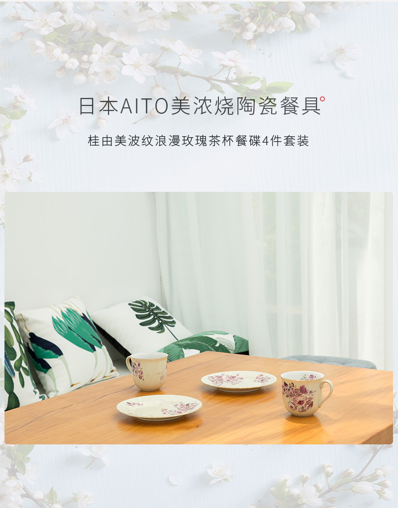 日本AITO美浓烧陶瓷马克杯餐碟2组套装 【梦幻玫瑰系列】